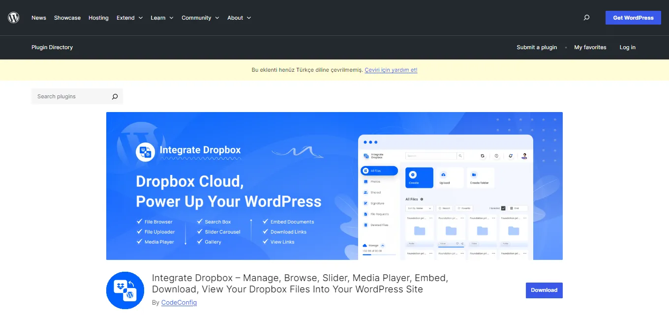 Integrate Dropbox, dosya yönetimini yöneticiler için kolaylaştıran ve sitenizin kullanıcı deneyimini iyileştiren birkaç özellik sunar. İndirme linkleri, e-kitap, sanat, müzik gibi dijital ürünler satan sitelerde, müşterilerin dosyaları kaydetmelerine olanak tanır.